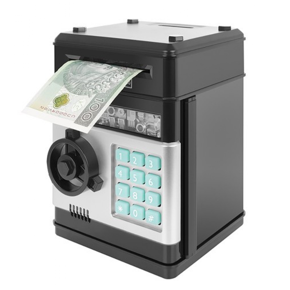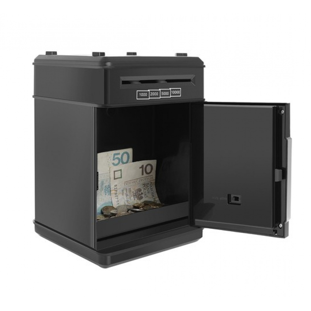 DROŠA VIETA KRĀJUMIEM – seifs ir ļoti pievilcīga alternatīva tradicionālajai krājkasītei. Tajā var ievietot gan banknotes, gan monētas, kā arī izņemt tās pēc atbilstoša koda ievadīšanas.