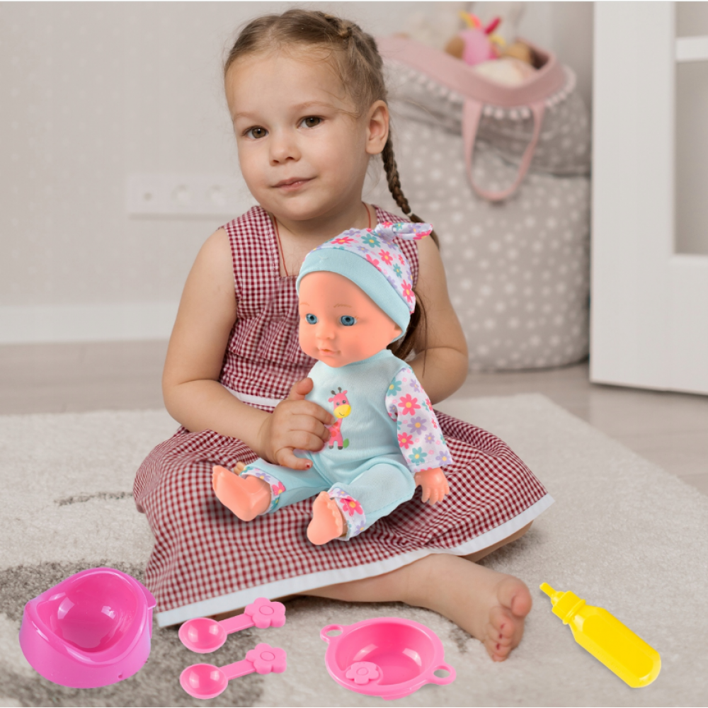 Šie burvīgie, krāsainie galda piederumi ir izstrādāti tā, lai tie atbilstu bērna rokām, palīdzot viņam attīstīt motoriku koordināciju. Rotaļāšanās ar tiem veicina motoriku attīstību un māca barošanas pamatprincipus. Tie ļauj bērniem pabarot savas lelles ar "maltīti", padarot rotaļu laiku vēl aizraujošāku.