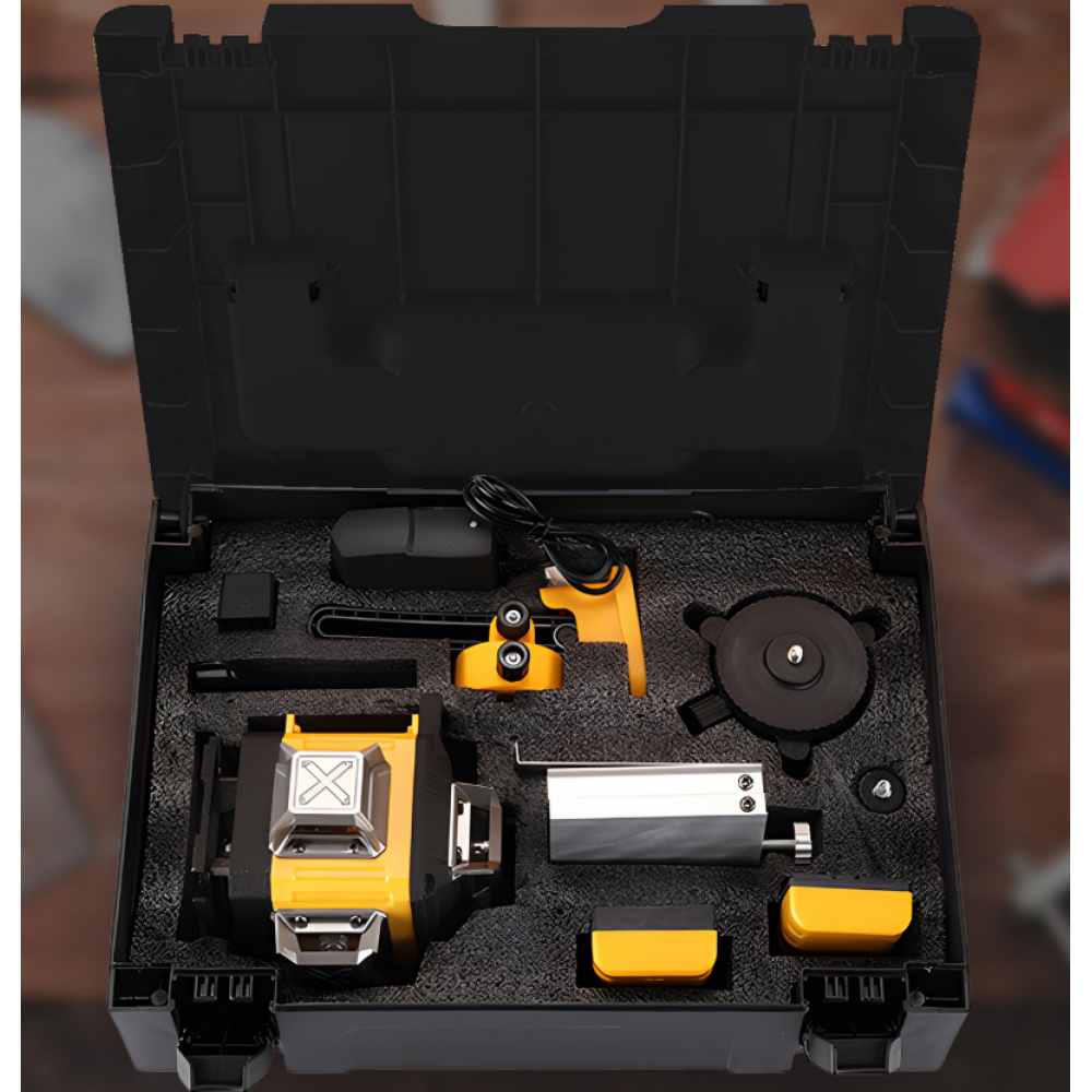 ✍️ Лазерный уровень ⚡ 4D ✍️ 16 линий ⚡ Зеленый лазер ✍️ Водонепроницаемость IP54 ⚡ Рабочий диапазон 25 м ✍️ Высокая точность измерений ⚡ Самовыравнивание ✍️ Большой набор аксессуаров ⚡ БЕСПЛАТНЫЕ ЗАЩИТНЫЕ ОЧКИ и ШТАТИВ ✍️ Простота использования ⚡ Два аккумулятора ✍️ Сертификат CE ⚡