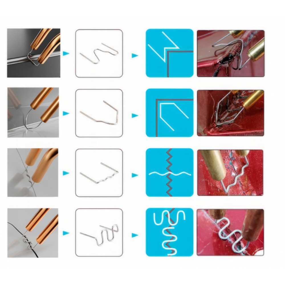 Функция: Эти сварные гвозди используются для сварки треснувших участков с целью повышения прочности и могут использоваться для различных видов ремонта/сварки пластиковых изделий.