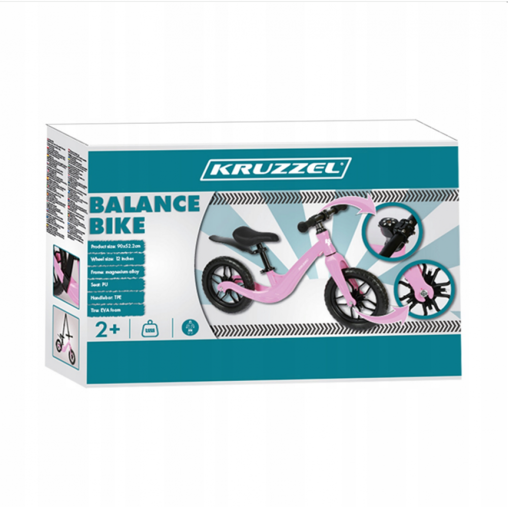 Līdzsvara velosipēds bērniem no 2 gadu vecuma KRUZZEL bērnu velosipēds viegls 12" riteņi + plecu siksna rozā!