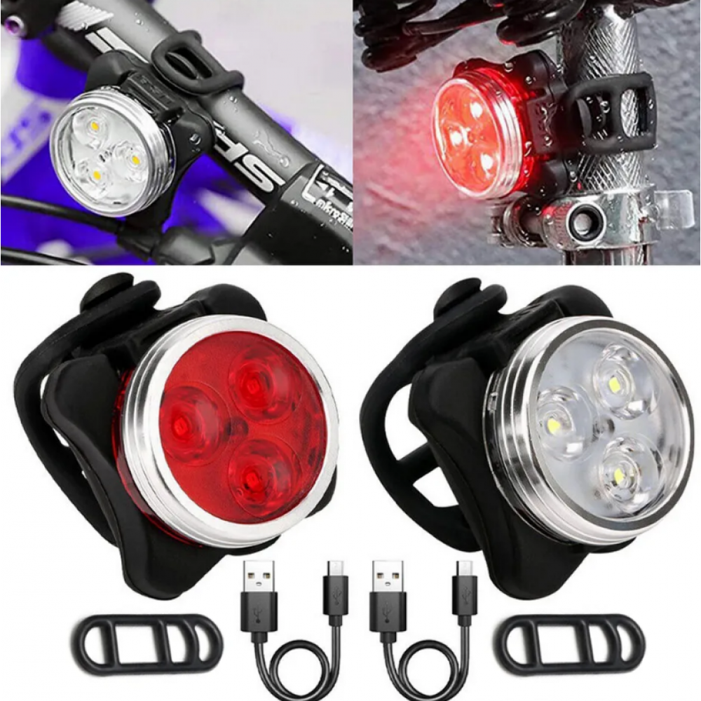 LED velosipēda lampa, velosipēda lampa, suņu klipšu komplekts, priekšpuse un aizmugure